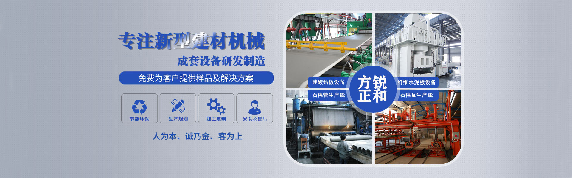 歡迎來(lái)到鄭州方銳正和機(jī)械制造有限公司網(wǎng)站!主要生產(chǎn):石棉瓦設(shè)備,石棉管設(shè)備,石棉板設(shè)備,石棉瓦生產(chǎn)線(xiàn),硅酸鈣板設(shè)備,水泥纖維板設(shè)備等新型建材成套設(shè)備,歡迎各界朋友前來(lái)咨詢(xún)洽談業(yè)務(wù)!